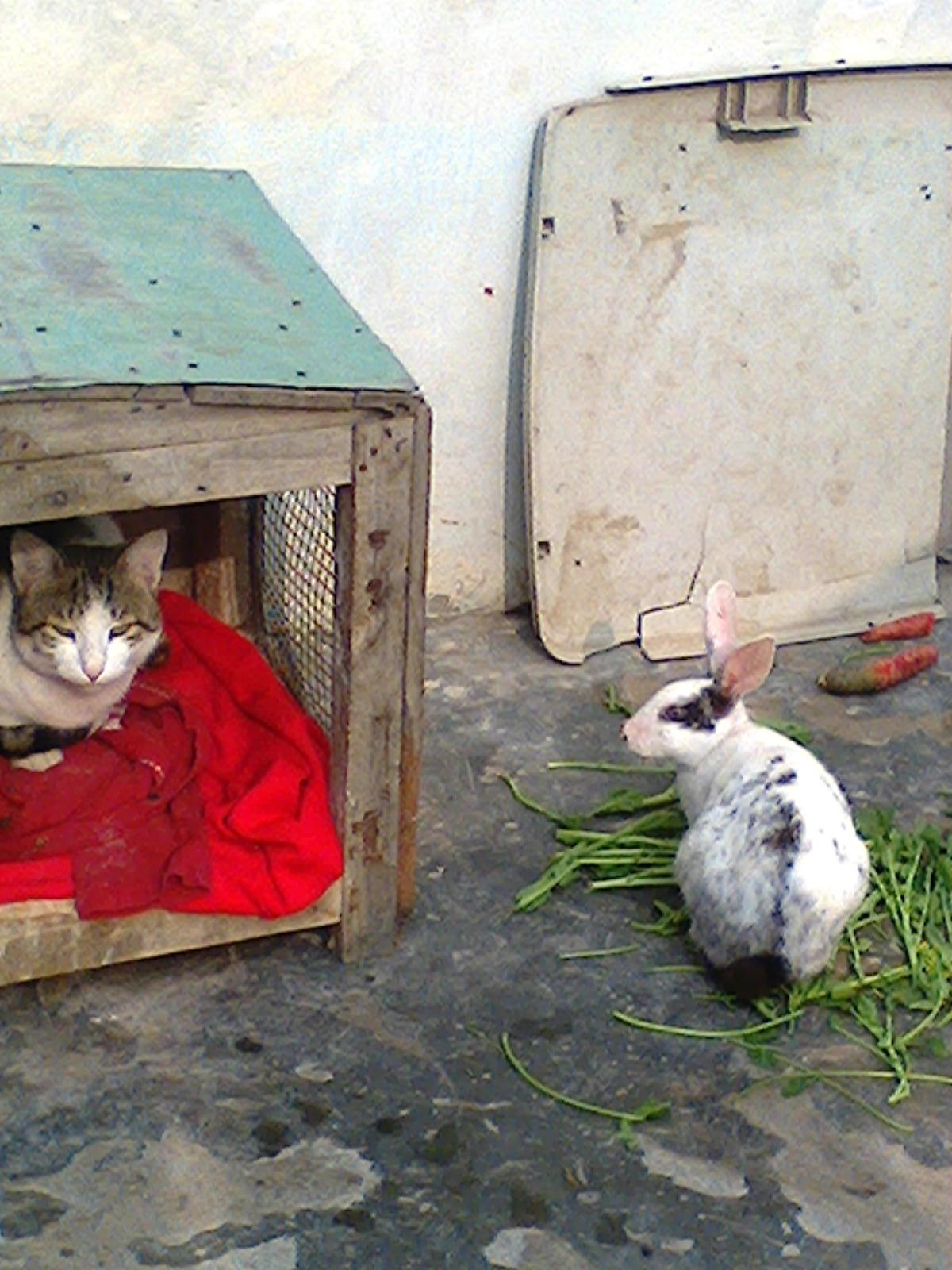 Tom and rabbit witch you have seen .It is my animal and they are very close friend and they always live in my garden just like a best friend they never quarrel them self . And they never hard each other .i like them